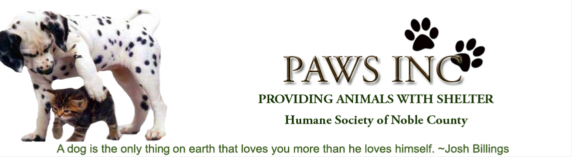 Add the PAWS – Humane Society of Noble County toolbar to IE or Firefox. Once you add the PAWS – Humane Society of Noble County toolbar for IE or Firefox, each time you shop at one of the more than 2,500 participating stores, a percentage of what you spend will be donated to us at no extra cost to you! (you could even save money as the toolbar provides coupons and deals). The toolbar also has a search box and each time you search the Internet, about a penny is donated to us. No registration is required! : https://www.goodsearch.com/toolbar/paws-humane-society-of-noble-county
